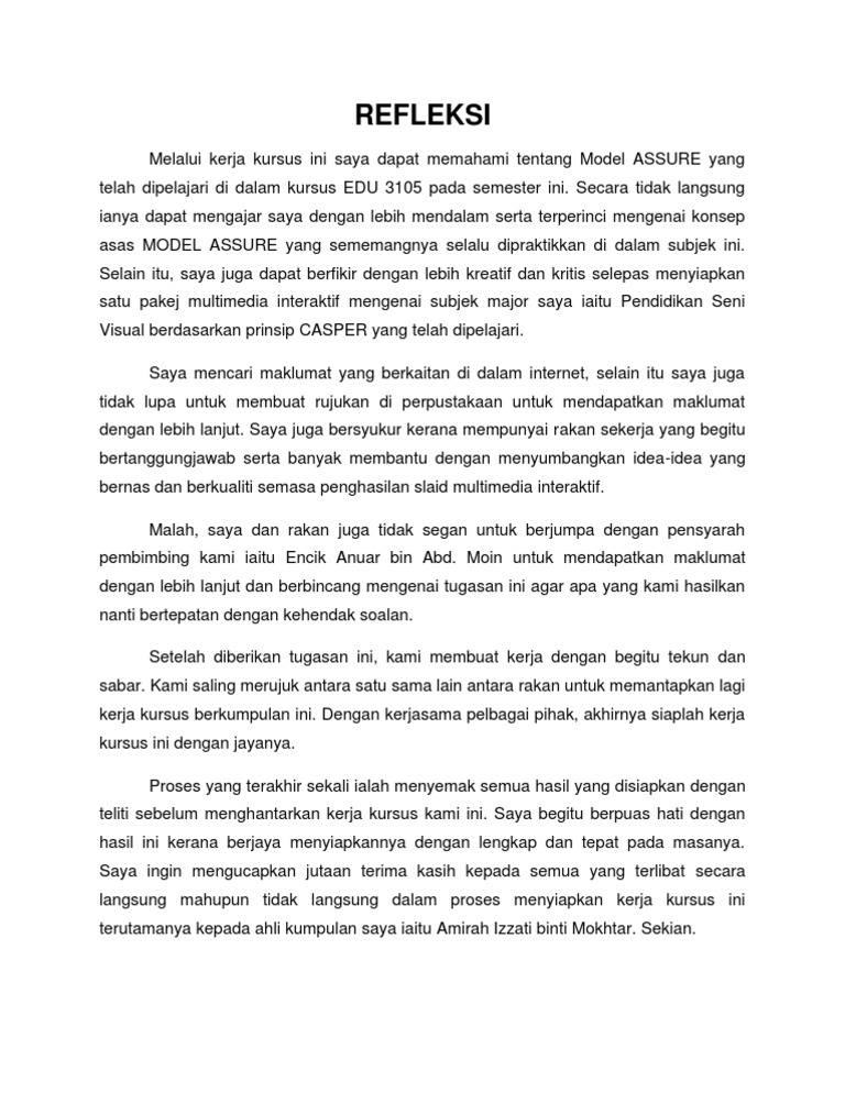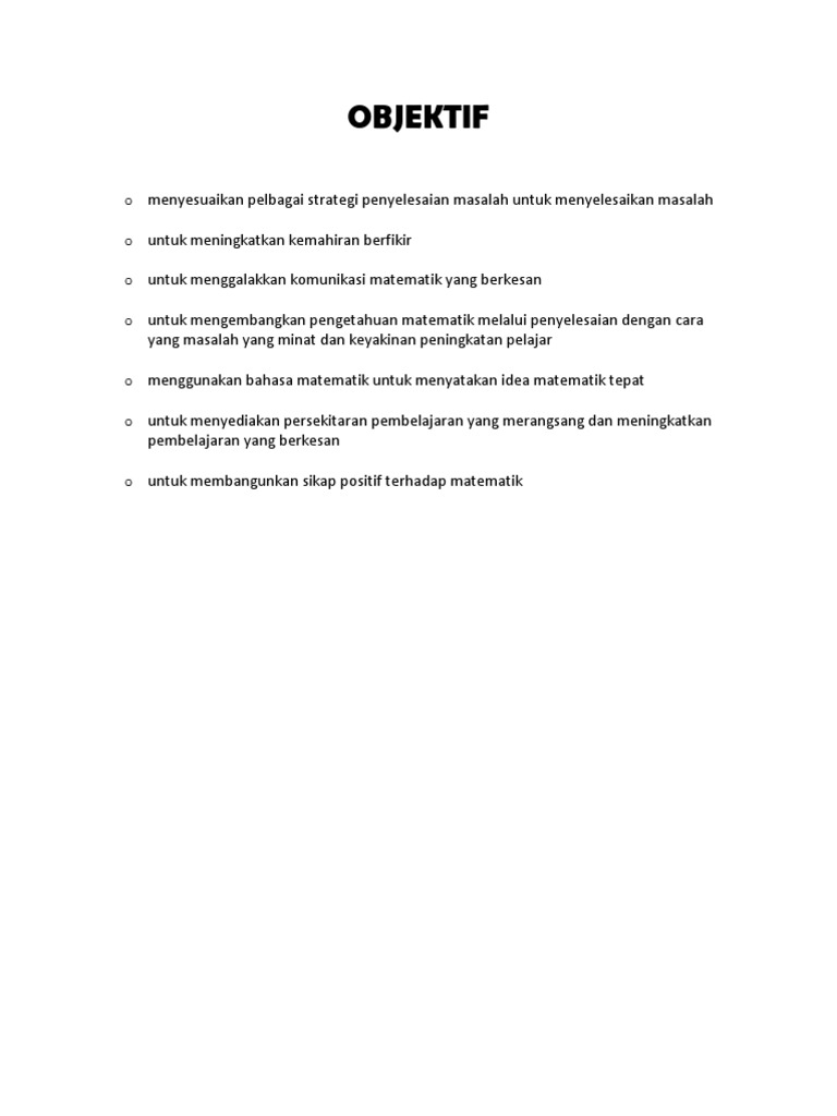Objektif Penutup Refleksi Untuk Kerja Projek Matematik Tambahan Pdf